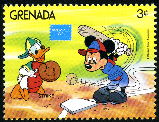 No. Scott: 1377 -- Año de emisión: 1986 -- Valor facial: 3c -- Multicolor -- Con perforación: 11 -- Tipo de Impresión: Litografía. Granada, 1986. Pato Donald y Mickey Mouse en la base. Pato Donald y Mickey Mouse en la base. Colección presentada en la Exhibición Americana de Filatelia Internacional, Ameripex '86. Para más información favor de dirigirse a biblioteca@mufi.org.mx.