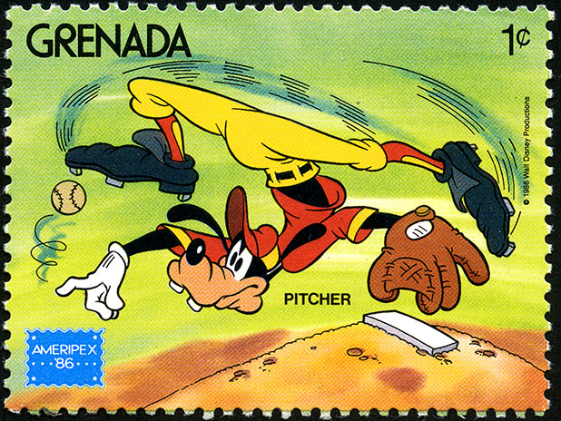 No. Scott: 1375 -- Año de emisión: 1986 -- Valor facial: 1c -- Multicolor -- Con perforación: 11 -- Tipo de Impresión: Litografía. Goofy como lanzador. Colección presentada en la Exhibición Americana de Filatelia Internacional, Ameripex '86. Para más información favor de dirigirse a biblioteca@mufi.org.mx.
