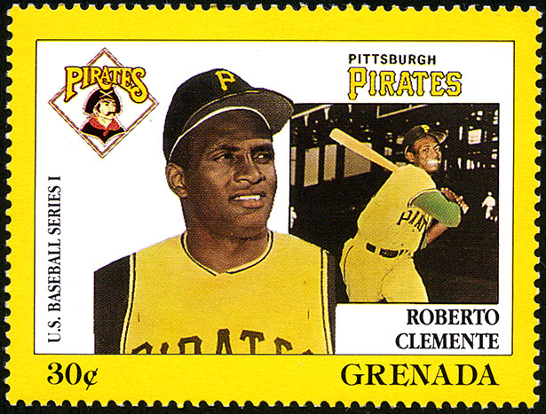No. Scott: 1665a -- Año de emisión: 1988 -- Valor facial: 30c -- Multicolor -- Con perforación: 14 -- Tipo de Impresión: Litografía. Timbre perforado del profesional beisbolista de los Pittsburgh Pirates Roberto Clemente Walker. Para más información favor de dirigirse a biblioteca@mufi.org.mx.
